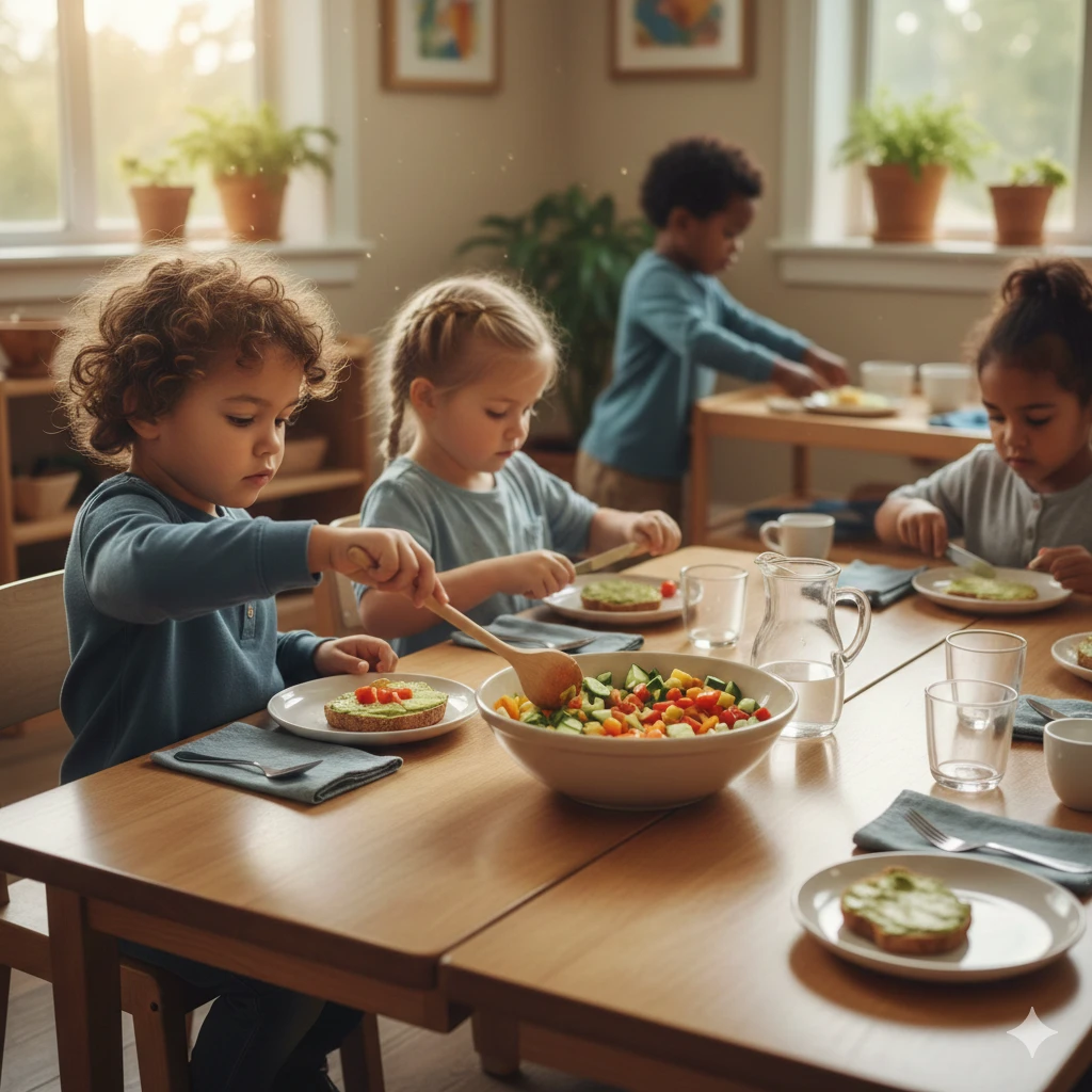 Харчування в дитячому садку — це не лише про калорії, вітаміни та дотримання норм СанПіНу. В системі Марії Монтессорі обідній стіл є одним із найпотужніших інструментів розвитку особистості. Поки традиційні заклади фокусуються на тому, щоб дитина була «сита та вдягнена», Дитячі садочки Дарницького району Montessori School впроваджує культуру свідомого споживання та самообслуговування, яка закладає фундамент успішного життя.